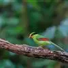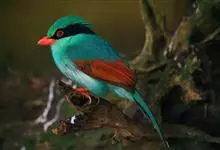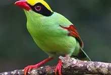 蓝绿鹊:中型鸟类,共有5个亚种。体长36-38厘米。尾长,嘴、脚红色。通体羽色主要为草绿色,宽阔的黑色贯眼纹向后延伸到后颈,在绿色的头侧极为醒目。两翅栗红色,内侧飞羽具黑色次端斑和白色尖端。尾绿色,…全部>>