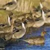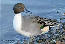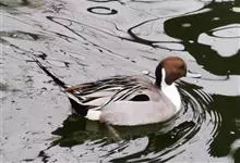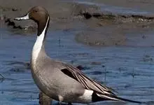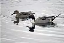 针尾鸭,是雁形目鸭科鸭属动物。体长约75厘米的大型戏水鸭,雄鸟头暗褐色,颈侧有白色纹路,向下与胸部白色相连,中央一对尾羽特别长;背灰色,有黑色细纹;翼镜绿色,胸腹白色,尾下覆羽黑色;雌鸟体羽大致为褐色,…全部>>
