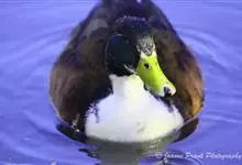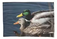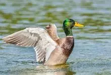 绿头鸭属游禽,大型鸭类。体长47-62厘米,体重大约1千克,外形大小和家鸭相似。雄鸟嘴黄绿色,脚橙黄色,头和颈辉绿色,颈部有一明显的白色领环。上体黑褐色,腰和尾上覆羽黑色,两对中央尾羽亦为黑色,且向…全部>>