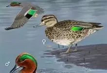 绿翅鸭(小凫、小水鸭、小麻鸭)雁形目 > 鸭科 > 鸭属 > 绿翅鸭