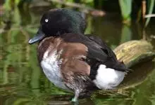 青头潜鸭,是雁形目鸭科潜鸭属的迁徙性鸟类。雄性头部和颈部为黑色,有绿色光泽,上体为黑褐色,尾下和翼下覆羽为白色。雌性头部和颈部为黑褐色,腹部以白色羽毛为主,两翅、腰和尾上尾下覆羽与雄性基本相同。…全部>>