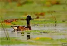 红头潜鸭为鸟纲雁形目鸭科潜鸭属动物,又名红头鸭,矶凫,体长约46厘米;雄鸟头部栗红色,胸部黑色,背部及腹部灰白色,尾黑色,嘴蓝灰色且端部黑色;雌鸟头部及胸部暗褐色,背部及腹部灰色,尾部褐色,嘴基部色浅。…全部>>
