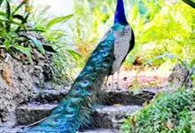 蓝孔雀,是鸡形目雉科孔雀属中的一种鸟。蓝孔雀是鸡类中的“巨人”,雄鸟和雌鸟的羽色有差,雄鸟头上具冠羽,头、颈和胸部均为蓝色,尾羽并不长,构成尾屏的尾上覆羽可达身长的2倍,平时合拢托在身后,…全部>>