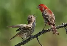 普通朱雀是雀形目雀科朱雀属鸟类,又名红朱雀、马料、青麻料。雄鸟上体红色,下体淡红色;头部、喉部、胸部及腰部亮红色;背部褐色染红色;两翼及尾黑褐色,羽缘染红色。雌鸟上体橄榄褐色,下体近白色,…全部>>