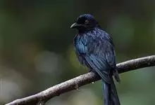 发冠卷尾是中型鸟类,体长28-35厘米。通体绒黑色缀蓝绿色金属光泽,额部具发丝状羽冠,外侧尾羽末端向上卷曲。栖息于海拔1500米以下的低山丘陵和山脚沟谷地带,多在常绿阔叶林、次生林或人工松林中活动。…全部>>