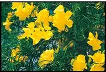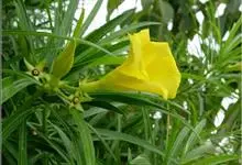 黄花夹竹桃K. Schum.),又名“酒杯花”“柳木子”“黄花状元竹”,是夹竹桃科,黄花夹竹桃属下的常绿乔木植物。高达5m,全株无毛,树皮棕褐色;叶互生,近革质,线形或线状披针形;花大,黄色,具香味,…全部>>