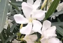 白花夹竹桃是夹竹桃科、夹竹桃属植物夹竹桃的栽培品种。常绿直立大灌木,枝条灰绿色;嫩枝条具稜,被微毛,老时毛脱落。叶3-4枚轮生,下枝为对生,叶面深绿,叶背浅绿色;侧脉纤细平行与中脉成直角;叶柄扁平,…全部>>