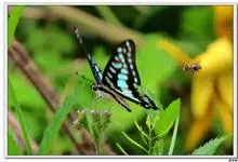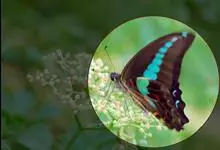青带凤蝶Graphium sarpedon ,又名青凤蝶,是最普遍的中型凤蝶,飞行速度很快。青带凤蝶的翅膀中央有许多浅蓝色的斑点,很整齐地排列成一条直线。这些斑点由上而下逐渐变大,就像一条青色的带子。全部>>