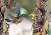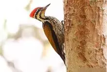 绿拟啄木鸟为鴷形目,须科,拟啄木属的一种。形较大拟啄木鸟略小,体长约260mm。头、颈及胸浅褐而具淡黄白色条纹;喉几为淡黄白色;身体余部草绿色。虹膜棕褐色,眼周裸露部黄色;嘴峰角黄色;跗跖和趾角黄…全部>>