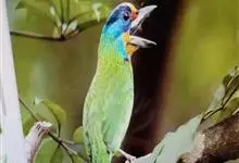 黑眉拟啄木鸟,为须䴕科、拟啄木鸟属的小型鸟类,体长20-25厘米,外形和金喉拟啄木鸟非常相似,但具粗著的黑色眉纹,头侧和耳覆羽以及下喉蓝色而不为银灰色,前颈两侧各有一块鲜红色斑。全部>>
