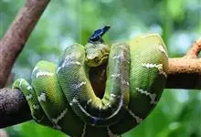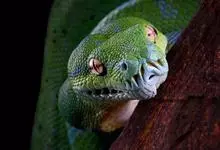 绿树蟒是爬行纲有鳞目蟒科树蟒属的脊索动物。绿树蟒,身体粗壮,头部和颈部区分明显;头部鳞片细小,粒状,热感应窝主要在吻鳞、上唇鳞前方和下唇鳞下方等位置;身体颜色变化较大,…全部>>