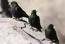 黄嘴山鸦是鸦科、山鸦属鸟类,体长38-42厘米。体形较细弱,黄色的嘴细而下弯,嘴亦较短。雌雄羽色相似。全身羽毛黑色沾褐具绿色金属光泽,尤以两翅和尾较明显。幼鸟腿灰色,嘴上黄色较少。…全部>>