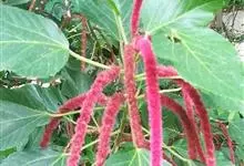 红穗铁苋菜:为大戟科、铁苋菜属植物,灌木,高0.5-3米。嫩枝被灰色短绒毛,毛逐渐脱落,小枝无毛。 花序色泽鲜艳,葇荑花序下垂,如狐狸尾状,雌花近卵形,长约0.8毫米,顶端急尖,具短毛;子房近球形,…全部>>