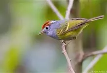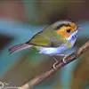 棕脸鹟莺:体长10厘米,是一种色彩亮丽而有特色的莺鸟。头栗色,具黑色侧冠纹。上体绿,腰黄色。下体白,颏及喉杂黑色点斑,上胸沾黄。与栗头鹟莺的区别在头侧栗色,白色眼圈不显著且无翼斑。…全部>>