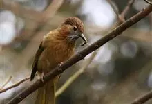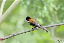 栗背短脚鹎,体长18-22厘米。上体栗褐,头顶和羽冠黑色。背栗色、翅和尾暗褐色具白色或灰白色羽缘。颏、喉白色,胸和两胁灰白色,腹中央和尾下覆羽白色。…全部>>