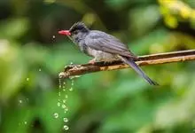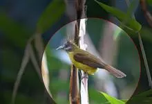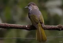 灰短脚鹎,体长19-22厘米。头顶和短的羽冠黑色,上体暗灰色,耳羽灰褐色,两翅表面橄榄绿黄色。大覆羽和内侧飞羽外翈橄榄黄色,在翅上形成大块绿黄色斑,在灰色的上体极为醒目。尾暗褐色具橄榄绿色羽缘。…全部>>