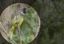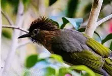 灰短脚鹎,体长19-22厘米。头顶和短的羽冠黑色,上体暗灰色,耳羽灰褐色,两翅表面橄榄绿黄色。大覆羽和内侧飞羽外翈橄榄黄色,在翅上形成大块绿黄色斑,在灰色的上体极为醒目。尾暗褐色具橄榄绿色羽缘。…全部>>