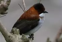 栗背短脚鹎,体长18-22厘米。上体栗褐,头顶和羽冠黑色。背栗色、翅和尾暗褐色具白色或灰白色羽缘。颏、喉白色,胸和两胁灰白色,腹中央和尾下覆羽白色。…全部>>