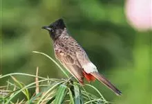 黑喉红臀鹎是雀形目鹎科鹎属鸟类,别称有黑头公、红臀鹎。头顶黑色具光泽;后颈、肩和背暗褐具灰色狭缘;腰羽几纯暗褐,尾上覆羽近白色,羽端浅灰褐色;尾羽褐黑,中央尾羽具狭窄的白色端斑,…全部>>
