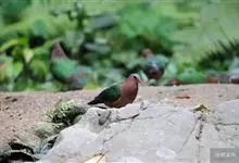绿背金鸠体长约25厘米,是中等体型、尾甚短的地栖型斑鸠。下体粉红,头顶灰色,额白,腰灰,两翼具亮绿色。雌鸟头顶无灰色。飞行时背部两道黑色和白色的横纹清晰可见。主要栖息于2000米以下的山地森林中,…全部>>