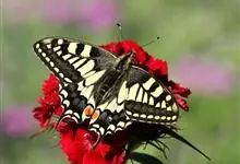 金凤蝶,是鳞翅目凤蝶科凤蝶属动物。金凤蝶为中型凤蝶,翅展70-84毫米,翅背面底色黑褐色,翅脉黑色,翅室具黄斑;前翅背面基部呈暗黄色,亚外缘为黑色,内具一列小黄斑;后翅背面亚外缘区具黑宽边,…全部>>