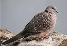 珠颈斑鸠,别名花斑鸠、珍珠鸠、花脖斑鸠、鸪鹪,是鸠鸽科副斑鸠属鸟类。体型中等,体长27~34cm,体重120~205g,雌鸟和雄鸟羽色相似,但雌鸟不如雄鸟羽色亮泽。珠颈斑鸠前额至头顶羽色稍淡,…全部>>