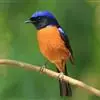 棕腹大仙鹟:体重24-28克,体长15-17厘米,是一种小型的色彩亮丽的鹟。雄鸟上体深蓝,下体棕色,脸黑,额、颈侧小块斑、翼角及腰部亮丽闪辉蓝色。与棕腹仙鹟易混淆,区别在色彩较暗。雌鸟灰褐,…全部>>