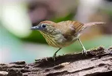 棕头雀鹛为鸦雀科,褐鹛属小型鸟类,体长10-13厘米。头顶栗褐色具黑色侧冠纹。上体茶黄色,飞羽外侧表面灰白色,内侧表面红棕色,内外二色之间夹有黑色。颏、喉白色具不明显的暗色纵纹,胸沾葡萄灰色,…全部>>