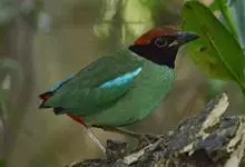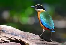 蓝翅八色鸫是雀形目八色鸫科的鸟类。体长17-20厘米,体重类约48-70克,体型圆胖,尾短,腿长,以身体具有红、绿、蓝、白、黑、黄、褐、栗等鲜艳夺目,丰富艳丽的色彩而得名,是很有观赏价值的鸟类。主要…全部>>