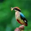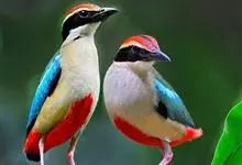 蓝翅八色鸫是雀形目八色鸫科的鸟类。体长17-20厘米,体重类约48-70克,体型圆胖,尾短,腿长,以身体具有红、绿、蓝、白、黑、黄、褐、栗等鲜艳夺目,丰富艳丽的色彩而得名,是很有观赏价值的鸟类。主要…全部>>