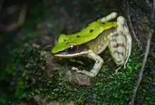 绿臭蛙,无尾目蛙科臭蛙属。雄蛙体长78~88mm,雌蛙体长93~131mm。头部扁平,头长略大于头宽,吻端钝圆,瞳孔横椭圆形,眼间距与上眼睑等宽;鼓膜小,…全部>>