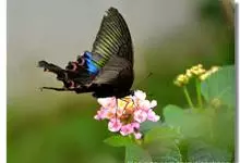 绿带翠凤蝶,又名深山凤蝶,为凤蝶科凤蝶属下的一种。分布于韩国、日本、中国台湾、中国大陆等地。翅黑色,满布金绿色鳞片。前翅亚缘具黄绿色横带纹。后翅外缘有6个略呈新月形的红斑,…全部>>
