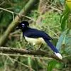 绒冠蓝鸦:雌雄相似,体长35厘米,体重127-170克。具中等长度的鸟喙。平均体重约为157克,外形漂亮,脸部黑色,眼圈金色,眼圈四周有蓝色斑块,头上羽冠黑色如同黑色毡帽戴在头顶,非常醒目,喉部蓝色,…全部>>