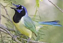 冠蓝鸦:体长22-30厘米,体重70-100克,翼展34-43厘米。顶冠明显,羽色为薰衣草蓝或淡蓝色,颈后、翅膀内侧、尾羽内侧和面部为白色。腹部为米白色,颈部有黑色领环,延伸至面部两侧,…全部>>