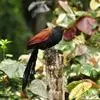 褐翅鸦鹃,是鹃形目鸦鹃科鸦鹃属的鸟类。褐翅鸦鹃的身体为黑色;头颈和胸带蓝紫色金属光泽并具黑亮的羽干纹,下胸至腹部泛金属绿光泽;两翼和肩部为棕栗色,外侧飞羽具暗色羽端,尾羽闪铜绿色光泽;虹膜赤红色,…全部>>