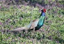 黑长尾雉大型鸡类,体长53~88厘米。雄较雌大。雄鸟通体紫蓝色,脸鲜红色,翅上有一条显著的白色翅斑,尾甚长,黑色,具显著的白色横斑,脚绿褐色。雌鸟通体橄榄褐色,脸红色,背和翅满布棕褐色斑纹和灰白色羽…全部>>
