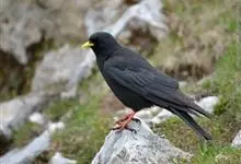 红嘴山鸦,是脊索动物门鸟纲雀形目鸦科鸟类。红嘴山鸦的成鸟通体羽毛纯黑色具有蓝色金属光泽,翼和尾泛有蓝绿色金属光泽;虹膜暗褐色,喙较为尖细,并且呈镰状下弯,喙和脚朱红色。…全部>>