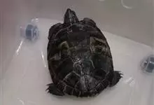 黑颈乌龟是龟鳖目淡水龟科乌龟属爬行动物;别名广东乌龟、广东草龟、黑点龟、黑颈水龟。黑颈乌龟体形较大,头较大,吻钝,略突出于上喙。头顶部黑色,侧面有黄绿色条纹;背甲黑色或棕褐色;中央有一条明显的脊棱,…全部>>