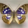 大紫蛱蝶为大型蝶种,翅展约86~110mm。翅紫黑色,有白色斑点点缀其中,雄蝶的翅具强烈紫色虹彩,其余部分暗褐色,后翅臀角具粉色斑。雌蝶体型较大,但是没有蓝紫金属光泽。原产于东亚的蝶类。…全部>>