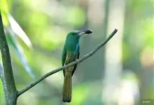 蓝须夜蜂虎是佛法僧目、蜂虎科的鸟类,体长约30厘米,是绿色林栖型蜂虎,蓝色的胸羽蓬松,嘴厚重而下弯。成鸟顶冠淡蓝,腹部棕黄带绿色纵纹。尾羽腹面黄褐。亚成鸟全身绿色。喉、胸部中央的羽甚长和亮色;该物种…全部>>