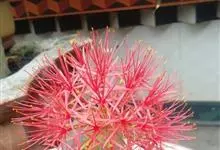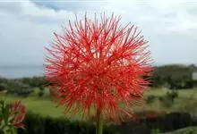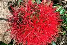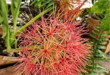 网球花是石蒜科,网球花属多年生草本植物。鳞茎球形,叶片长圆形,叶柄短,鞘状。花茎直立,实心,高可达90厘米,先叶抽出,淡绿色或有红斑;伞形花序具多花,花红色;花被管圆筒状,花被裂片线形,花丝红色,…全部>>