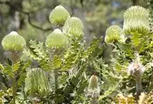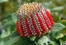 帝王花,山龙眼科帝王花属多年生常绿灌木植;茎干粗壮,叶色翠绿光亮;花朵呈圆球状;其苞片有的完全打开,使花朵呈扁平状;有的则呈半闭合状态,使花朵相对修长,…全部>>