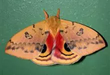 翅正面淡灰褐色,多褐色波纹状线,前后翅的外缘和亚缘线3条,中横线1条,前翅中室5条,从前室前缘到后翅cu2室有1列眼状纹,以两翅的m3室斑及cu1室斑为最显著,内半部橘红色,外半部黑色,…全部>>