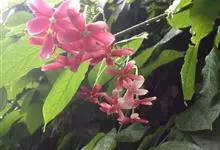 使君子 Jongkind)是使君子科、使君子属攀援灌木,叶对生,椭圆形,两面均被灰白色柔毛。穗状花序,倒挂下垂。花期夏秋。果有五棱,熟时黑色,种子白色。分布于印度、缅甸、菲律宾和中国。喜温润,深根性,…全部>>