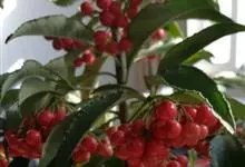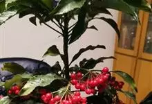 朱砂根是报春花科紫金牛属植物,又名铁凉伞、红铜盘、百两金、大罗伞、开喉箭等,为常绿小灌木,高1~2米,茎粗壮,无毛,除侧生特殊花枝外,无分枝,叶片革质或坚纸质,椭圆形、椭圆状披针形至倒披针形,…全部>>