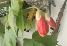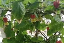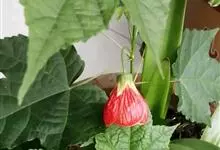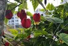 红萼苘麻是锦葵科、苘麻属常绿软木质灌木,叶绿色,长5-10厘米,心形,叶端尖,叶缘有钝锯齿,有时分裂,有细细的叶柄;叶互生,掌状叶脉;花单生于叶腋,具长梗,下垂;花萼红色,半套着大约4厘米长的花瓣,…全部>>