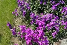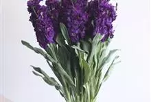 紫罗兰 W.T.Aiton)是十字花科紫罗兰属植物。二年生或多年生草本。植株高60厘米,布满灰白色的分枝柔毛;茎直立,多分枝,基部稍木质化;叶片为长圆形、倒披针形或匙形;总状花序顶生和腋生;花多数,…全部>>