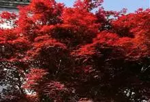 红枫,园艺种,槭树科槭属落叶小乔木,高5~8 m;树冠伞形,枝条开张,细弱。单叶对生,近圆形,薄纸质,掌状7~9深裂,裂深常为全叶片的1/2~1/3,基部心形,裂片卵状长椭圆形至披针形,先端尖,…全部>>