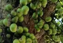 聚果榕是桑科榕属植物,乔木,高达25-30米,胸径60-90厘米,树皮灰褐色。叶薄革质,椭圆状倒卵形至椭圆形或长椭圆形,长10-14厘米,宽3.5-4.5厘米。榕果聚生于老茎瘤状短枝上,…全部>>