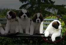 圣伯纳犬,别名巴里汉德,属于大型工作犬,肩高约65~90厘米,体重约50~90千克。圣伯纳犬身体强壮,被毛红褐色和白色相间,头圆而宽大。颈部强壮,胸宽深,背直。前肢长直,腕关节略前倾,后肢腿骨粗壮,…全部>>